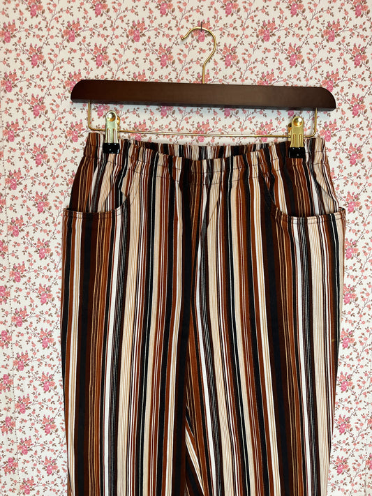 Vintage 1970s Brown Striped Cotton Cropped Trousers