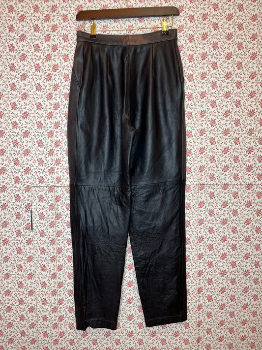Vintage 1980s High Waisted Dark Grey Leather Trousers