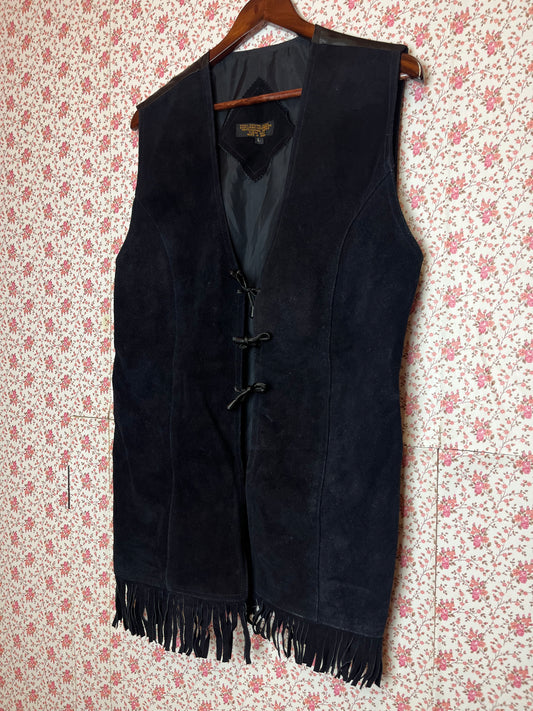 Vintage 1970s Black Suede Tassel Waistcoat