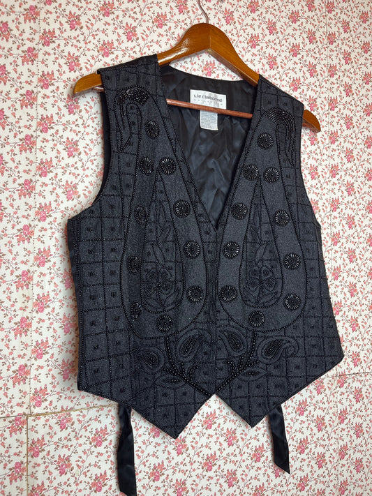 Vintage 90s Heavily Beaded Black Silk Waistcoat