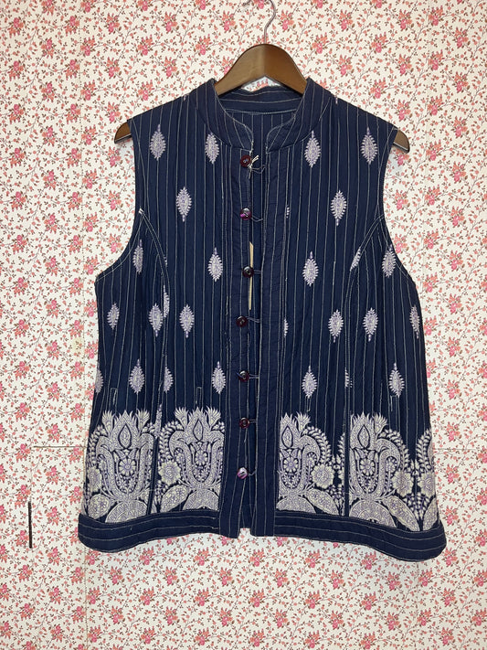 Vintage 1970s Reversible Quilted Paisley Printed Navy Waistcoat