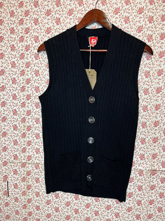 Vintage Black Ribbed Knit Waistcoat