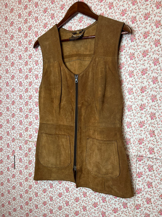 Vintage Deerskin Tan Suede Zip Up Waistcoat