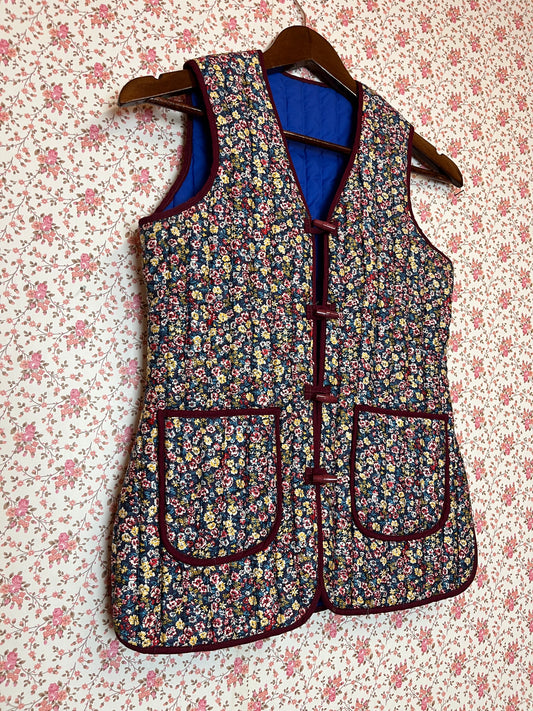 Vintage Handmade Quilted Floral Waistcoat