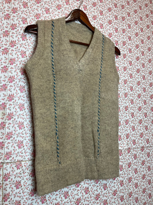 Vintage Hand Made Wool V Neck Waistcoat