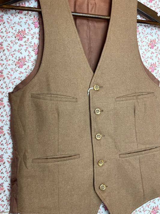 Vintage Brown Wool 5 Button Down Quadruple Pocket Waistcoat