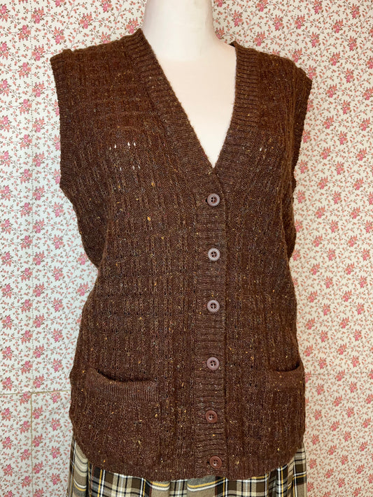 Vintage Windsmoor Brown Wool Blend Knitted Waistcoat