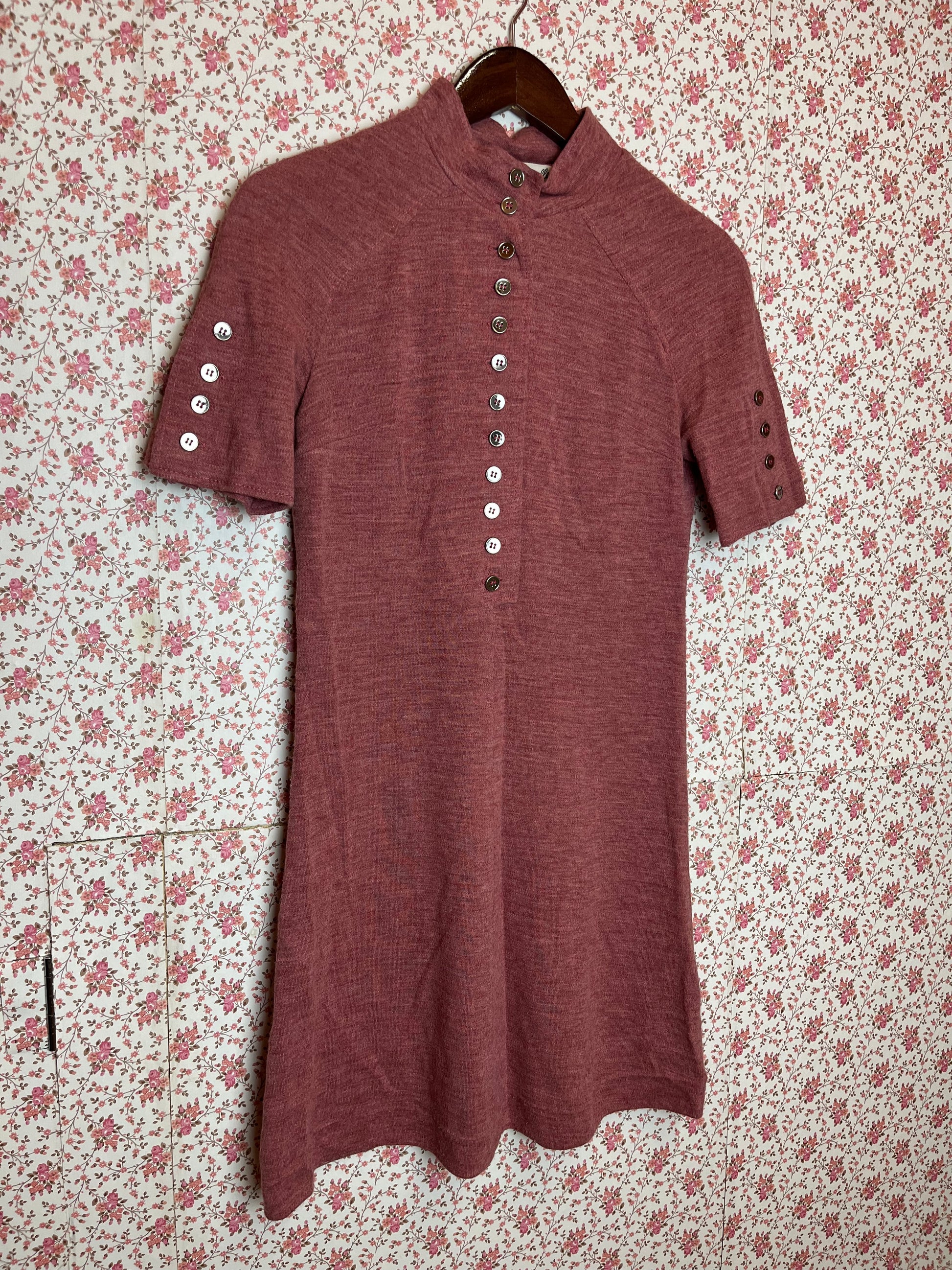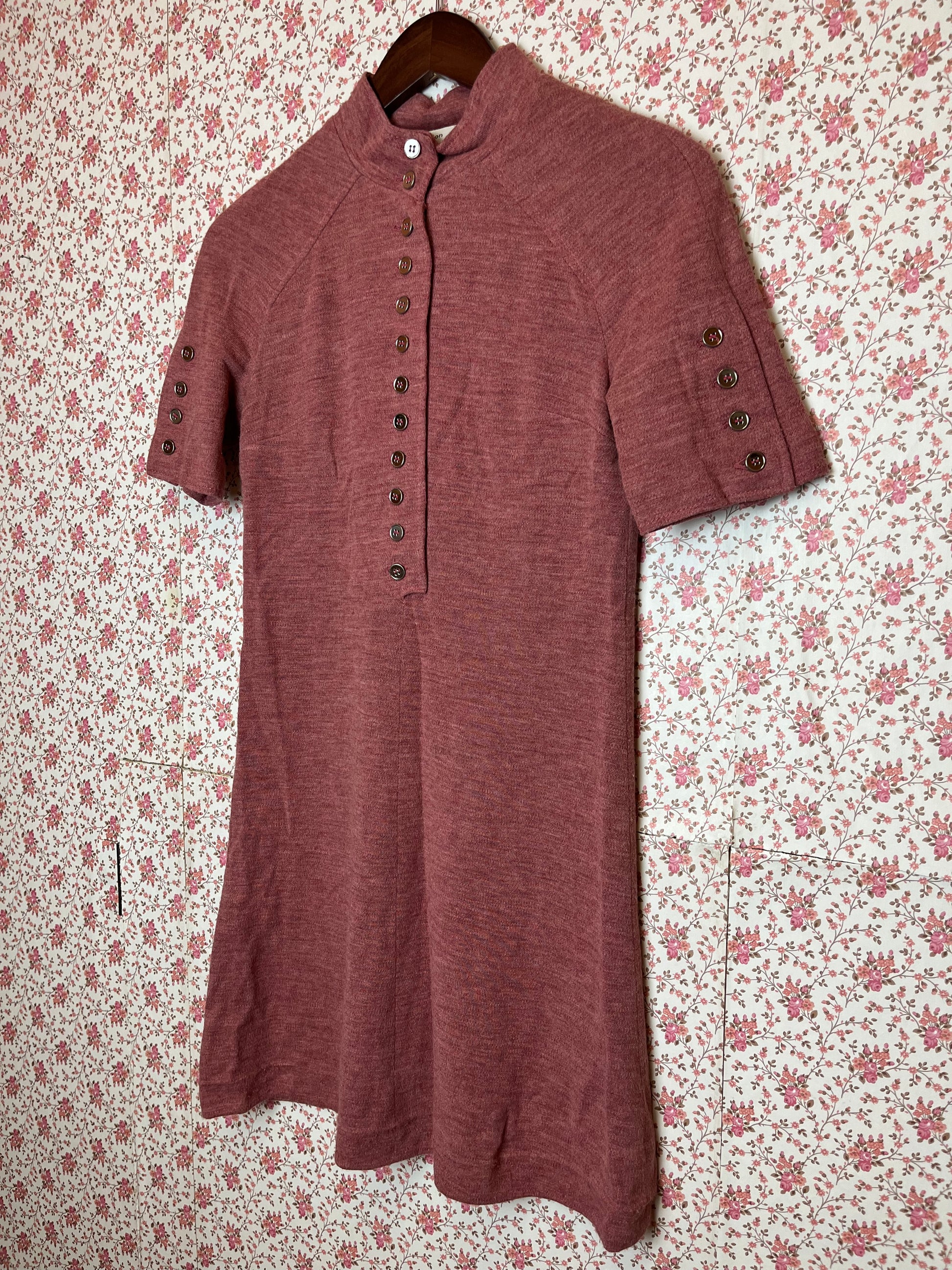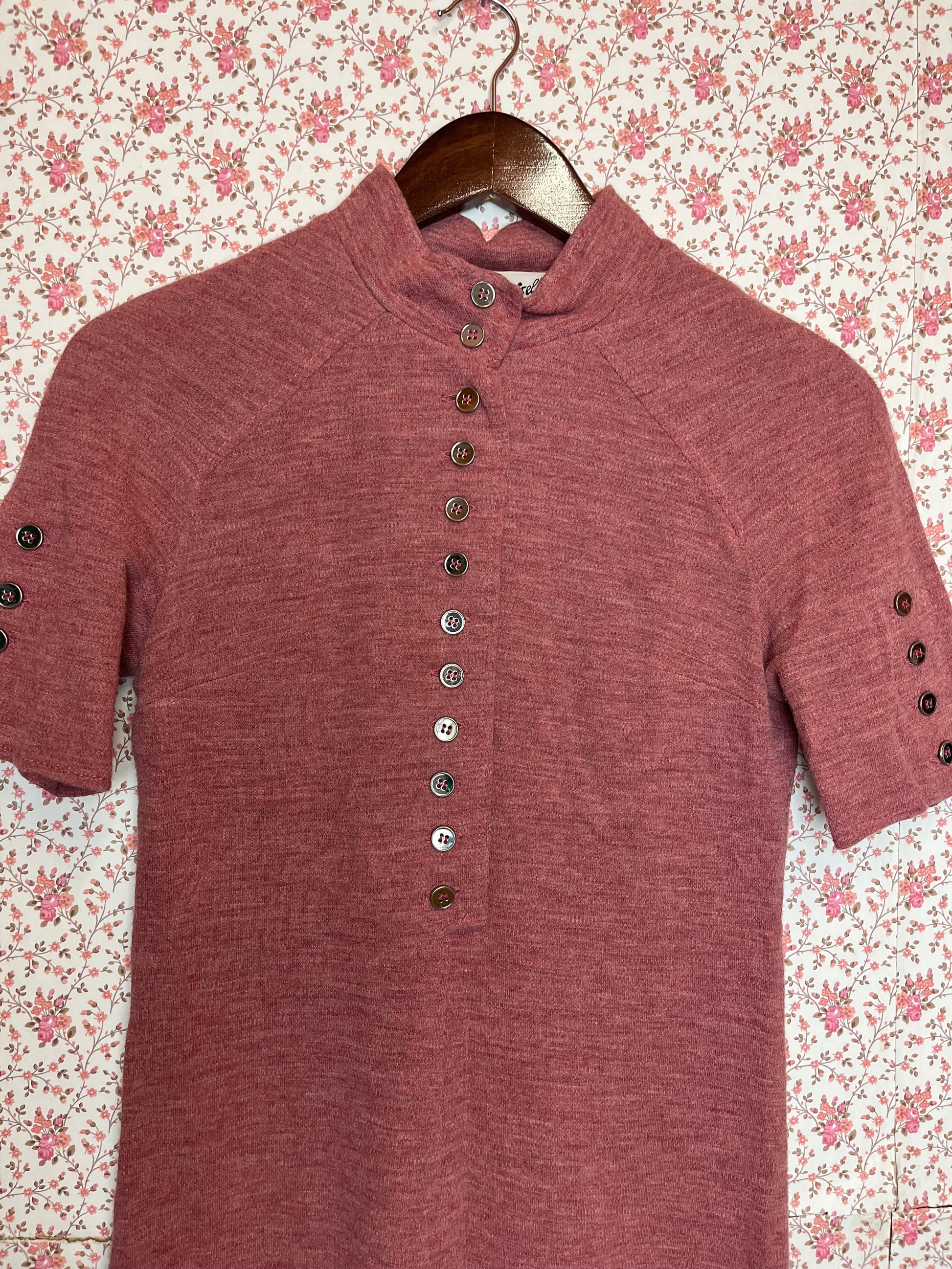 Vintage 1960s Red Marl Jersey T-Shirt Dress with Buttons