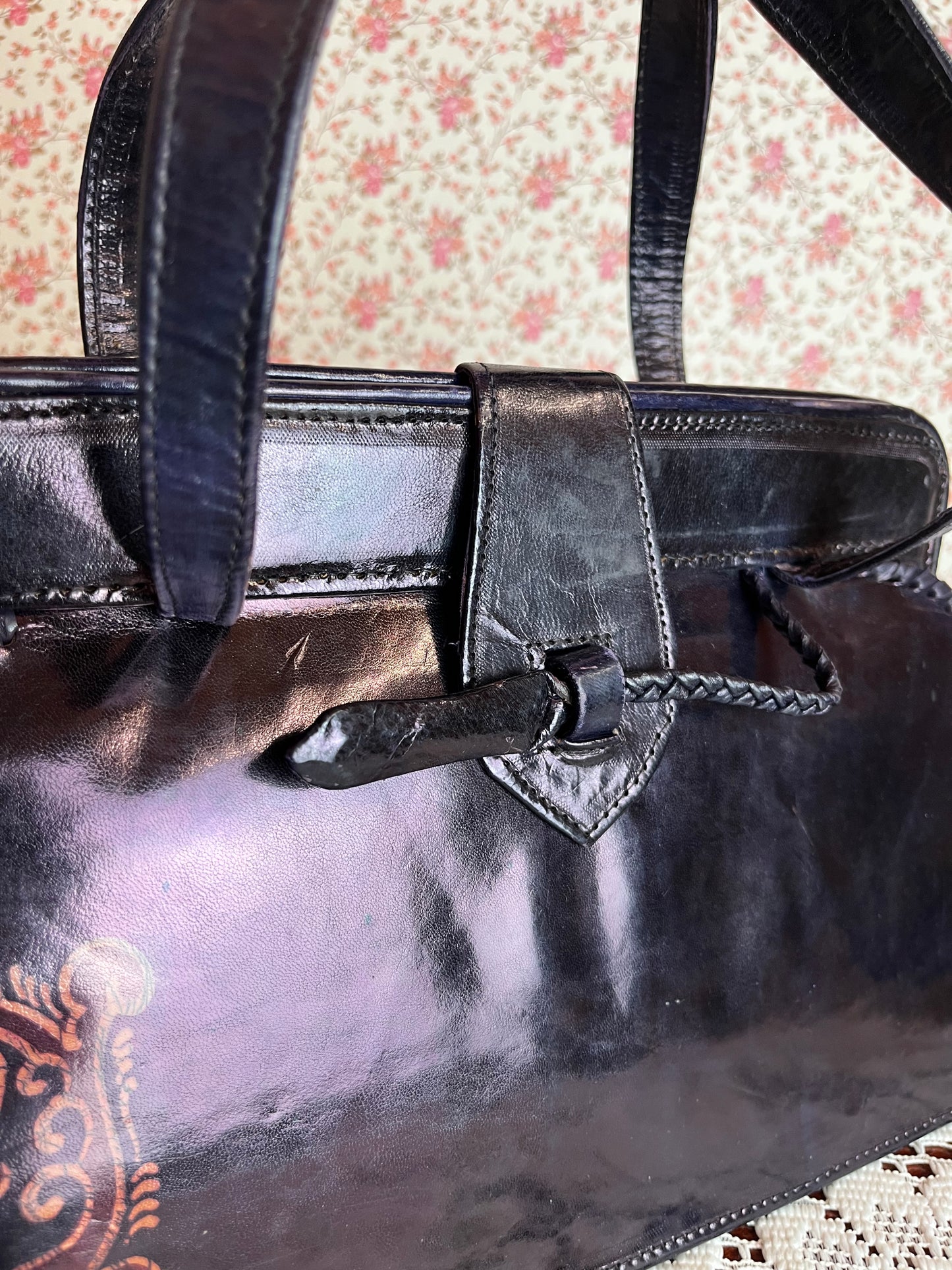 Vintage 1970s Purple Leather Bound Handbag