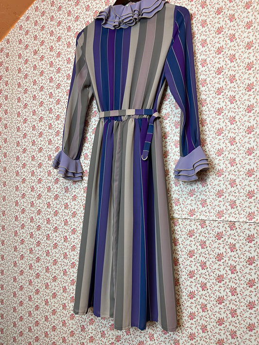 Vintage 1970s Shubette Purple Striped Shirtwaist Dress