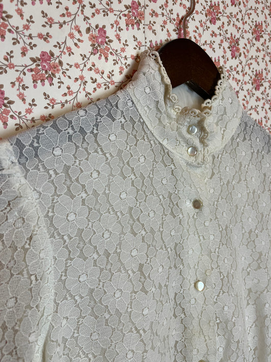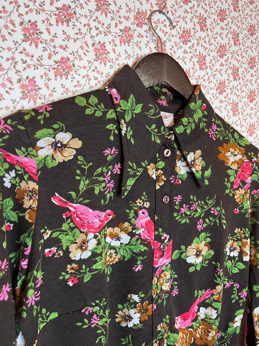 Vintage 1970s Floral & Bird Print Popover Shirt