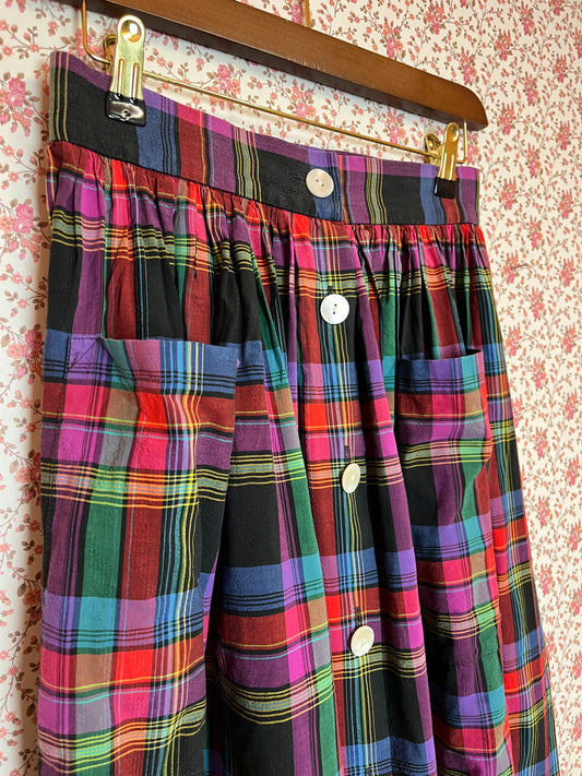 Vintage 1970s Jaeger Multi Colour Plaid Midi Skirt